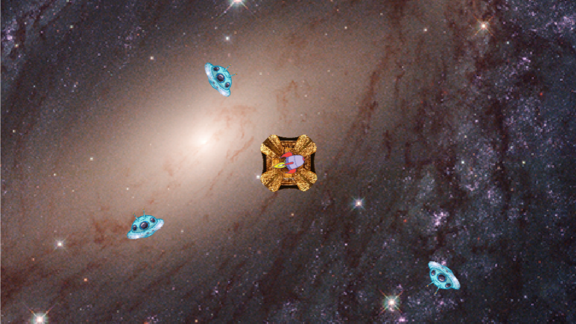 Verteidige deinen Turm von Aliens! Steuere mit den Pfeiltasten und schiesse mit der Leertaste, oder clicke mit der Maus.